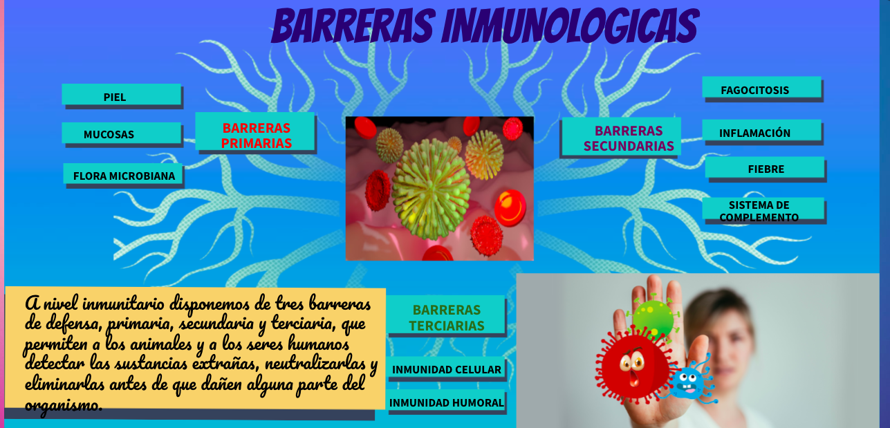 En el sistema inmunitario, las barreras de defensa se clasifican en primarias, secundarias y terciarias. Las barreras primarias son la primera línea de defensa y están compuestas por la piel, las mucosas y las secreciones como el sudor, la saliva y el jugo gástrico, que impiden la entrada de patógenos. Si los patógenos logran superar estas barreras, entran en juego las barreras secundarias, que incluyen la respuesta inflamatoria, la fiebre y la acción de células como los macrófagos y neutrófilos, que fagocitan a los invasores. Finalmente, si los patógenos persisten, se activan las barreras terciarias, donde entran en acción los linfocitos T y B, que desarrollan una respuesta específica contra el patógeno mediante la producción de anticuerpos.